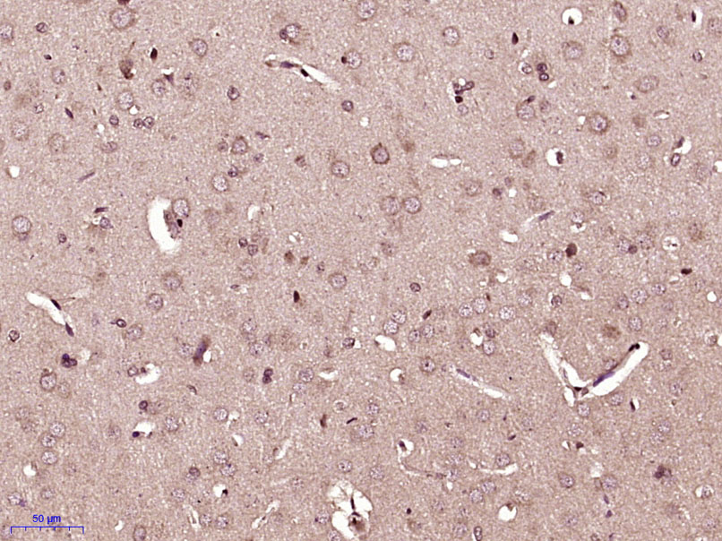 Paraformaldehyde-fixed, paraffin embedded (Rat brain); Antigen retrieval by boiling in sodium citrate buffer (pH6.0) for 15min; Block endogenous peroxidase by 3% hydrogen peroxide for 20 minutes; Blocking buffer (normal goat serum) at 37°C for 30min; Antibody incubation with (CEND1) Polyclonal Antibody, Unconjugated (bs-7858R) at 1:400 overnight at 4°C, followed by operating according to SP Kit(Rabbit) (sp-0023) instructionsand DAB staining.