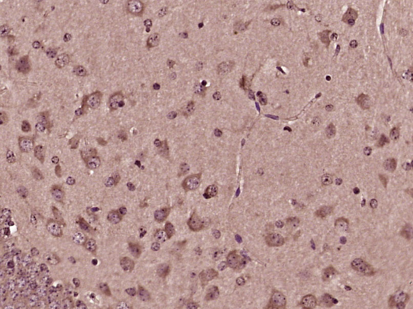 Paraformaldehyde-fixed, paraffin embedded (Mouse cerebellum); Antigen retrieval by boiling in sodium citrate buffer (pH6.0) for 15min; Block endogenous peroxidase by 3% hydrogen peroxide for 20 minutes; Blocking buffer (normal goat serum) at 37°C for 30min; Antibody incubation with (CEND1) Polyclonal Antibody, Unconjugated (bs-7858R) at 1:400 overnight at 4°C, followed by operating according to SP Kit(Rabbit) (sp-0023) instructionsand DAB staining.