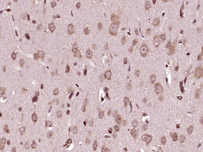 Paraformaldehyde-fixed, paraffin embedded (rat brain tissue); Antigen retrieval by boiling in sodium citrate buffer (pH6.0) for 15min; Block endogenous peroxidase by 3% hydrogen peroxide for 20 minutes; Blocking buffer (normal goat serum) at 37°C for 30min; Antibody incubation with (NEDD4) Polyclonal Antibody, Unconjugated (bs-7877R) at 1:400 overnight at 4°C, followed by operating according to SP Kit(Rabbit) (sp-0023) instructionsand DAB staining.