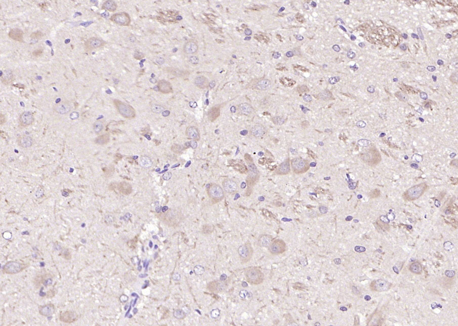 Paraformaldehyde-fixed, paraffin embedded (Mouse brain); Antigen retrieval by boiling in sodium citrate buffer (pH6.0) for 15min; Block endogenous peroxidase by 3% hydrogen peroxide for 20 minutes; Blocking buffer (normal goat serum) at 37°C for 30min; Antibody incubation with (VHLH) Polyclonal Antibody, Unconjugated (bs-7883R) at 1:400 overnight at 4°C, followed by operating according to SP Kit(Rabbit) (sp-0023) instructions and DAB staining.