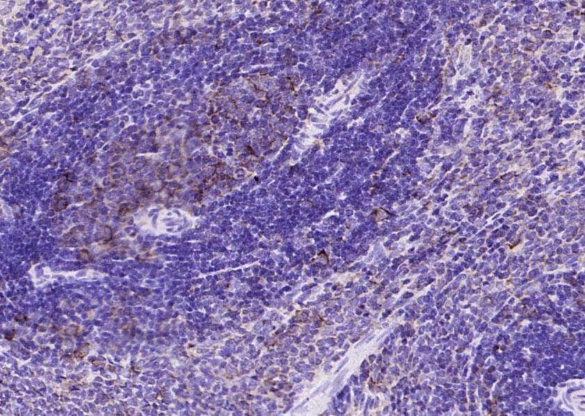 Paraformaldehyde-fixed, paraffin embedded (mouse spleen); Antigen retrieval by boiling in sodium citrate buffer (pH6.0) for 15min; Block endogenous peroxidase by 3% hydrogen peroxide for 20 minutes; Blocking buffer (normal goat serum) at 37°C for 30min; Antibody incubation with (VHL) Polyclonal Antibody, Unconjugated (bs-7883R) at 1:200 overnight at 4°C, followed by operating according to SP Kit(Rabbit) (sp-0023) instructionsand DAB staining.