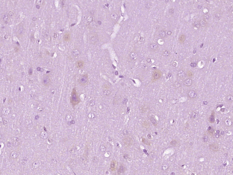 Paraformaldehyde-fixed, paraffin embedded (rat brain tissue); Antigen retrieval by boiling in sodium citrate buffer (pH6.0) for 15min; Block endogenous peroxidase by 3% hydrogen peroxide for 20 minutes; Blocking buffer (normal goat serum) at 37°C for 30min; Antibody incubation with (GBL protein) Polyclonal Antibody, Unconjugated (bs-8161R) at 1:400 overnight at 4°C, followed by operating according to SP Kit(Rabbit) (sp-0023) instructionsand DAB staining.