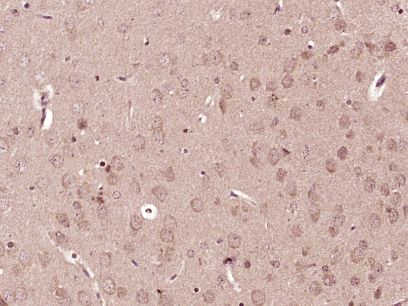 Paraformaldehyde-fixed, paraffin embedded (Mouse brain); Antigen retrieval by boiling in sodium citrate buffer (pH6.0) for 15min; Block endogenous peroxidase by 3% hydrogen peroxide for 20 minutes; Blocking buffer (normal goat serum) at 37°C for 30min; Antibody incubation with (Phospho-CRMP2 (Thr514+Ser518)) Polyclonal Antibody, Unconjugated (bs-8284R) at 1:400 overnight at 4°C, followed by operating according to SP Kit(Rabbit) (sp-0023) instructionsand DAB staining.