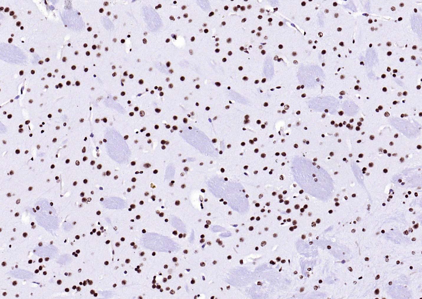 Paraformaldehyde-fixed, paraffin embedded (human brain); Antigen retrieval by boiling in sodium citrate buffer (pH6.0) for 15min; Block endogenous peroxidase by 3% hydrogen peroxide for 20 minutes; Blocking buffer (normal goat serum) at 37°C for 30min; Antibody incubation with (Histone H3 (Tri Methyl K4)) Polyclonal Antibody, Unconjugated (bs-4715R) at 1:200 overnight at 4°C, followed by operating according to SP Kit(Rabbit) (sp-0023) instructionsand DAB staining.