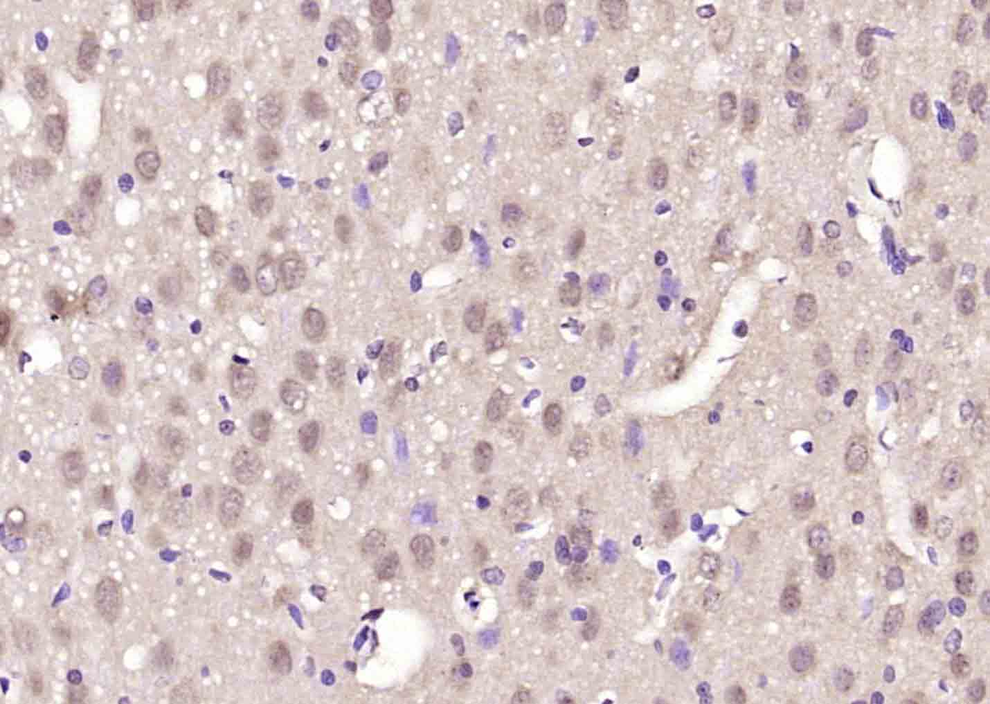 Paraformaldehyde-fixed, paraffin embedded (rat brain); Antigen retrieval by boiling in sodium citrate buffer (pH6.0) for 15min; Block endogenous peroxidase by 3% hydrogen peroxide for 20 minutes; Blocking buffer (normal goat serum) at 37°C for 30min; Antibody incubation with (ZNF354C) Polyclonal Antibody, Unconjugated (bs-9189R) at 1:200 overnight at 4°C, followed by operating according to SP Kit(Rabbit) (sp-0023) instructionsand DAB staining.