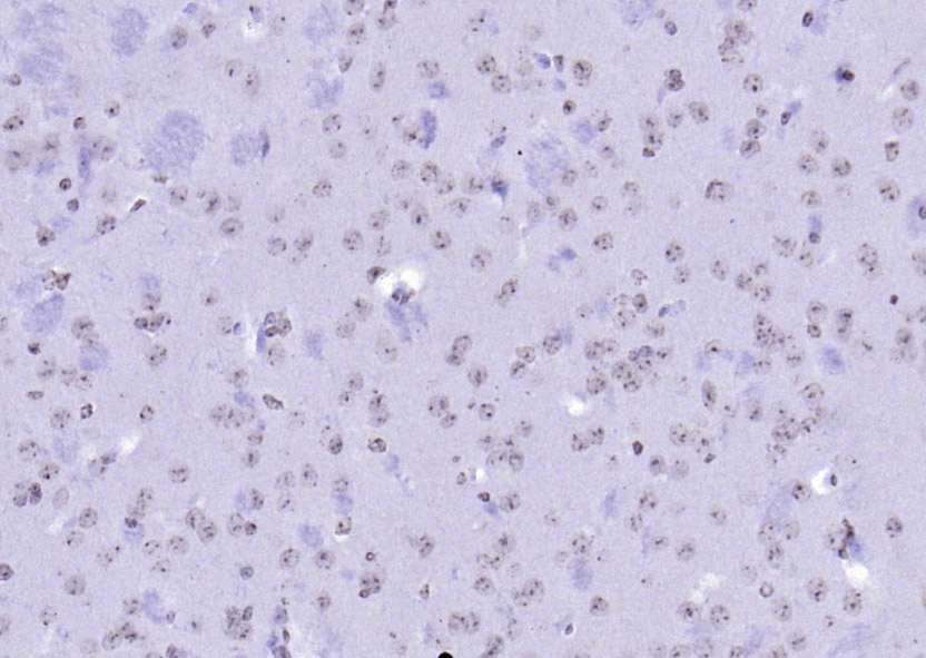 Paraformaldehyde-fixed, paraffin embedded (mouse brain); Antigen retrieval by boiling in sodium citrate buffer (pH6.0) for 15min; Block endogenous peroxidase by 3% hydrogen peroxide for 20 minutes; Blocking buffer (normal goat serum) at 37°C for 30min; Antibody incubation with (RNF113A) Polyclonal Antibody, Unconjugated (bs-9248R) at 1:200 overnight at 4°C, followed by operating according to SP Kit(Rabbit) (sp-0023) instructionsand DAB staining.