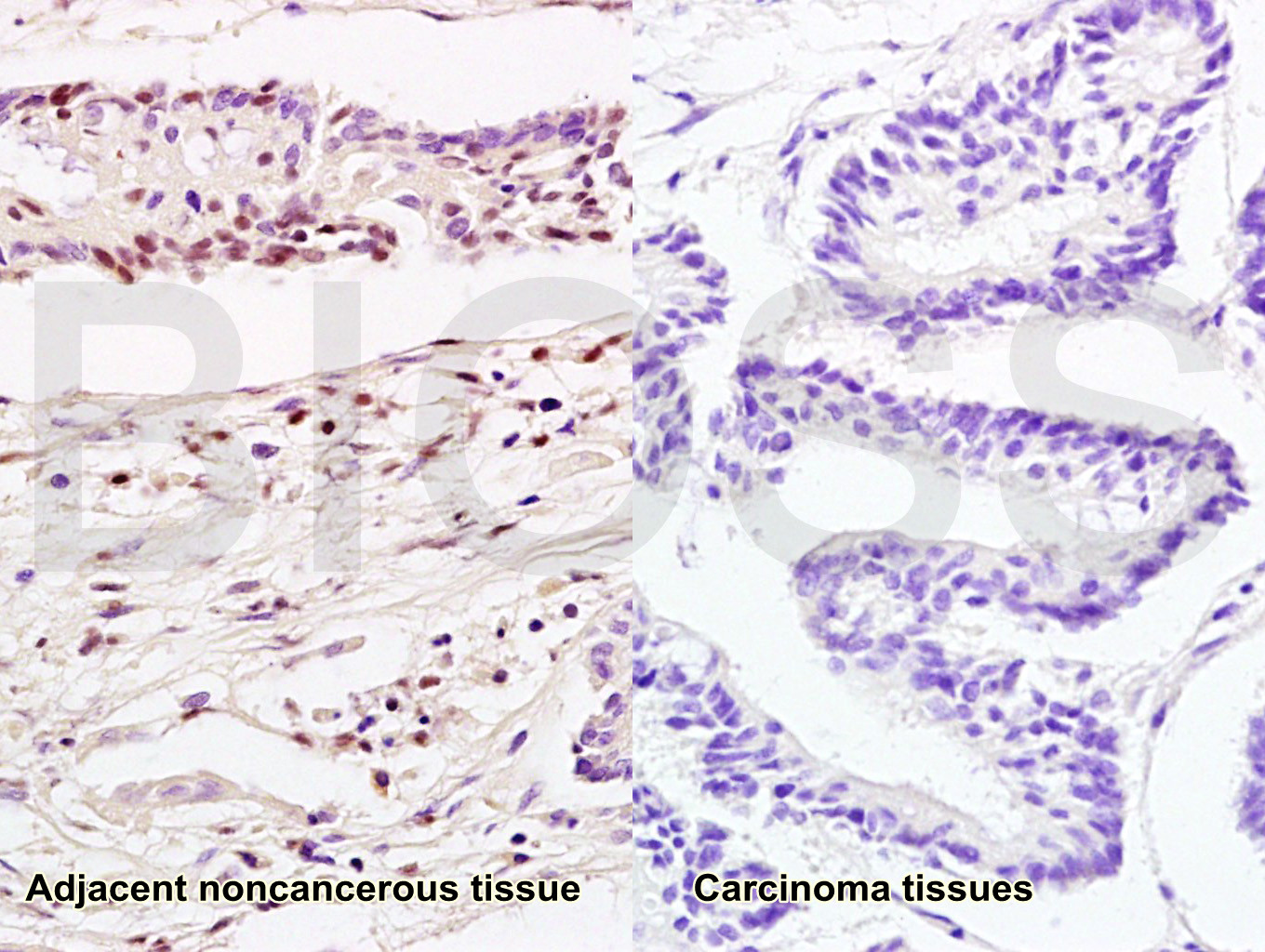 Antigen retrieval: citrate buffer ( 0.01M, pH 6.0 ), Boiling bathing for 15min; Block endogenous peroxidase by 3% Hydrogen peroxide for 30min; Blocking buffer (normal goat serum,C-0005) at 37℃ for 20 min;