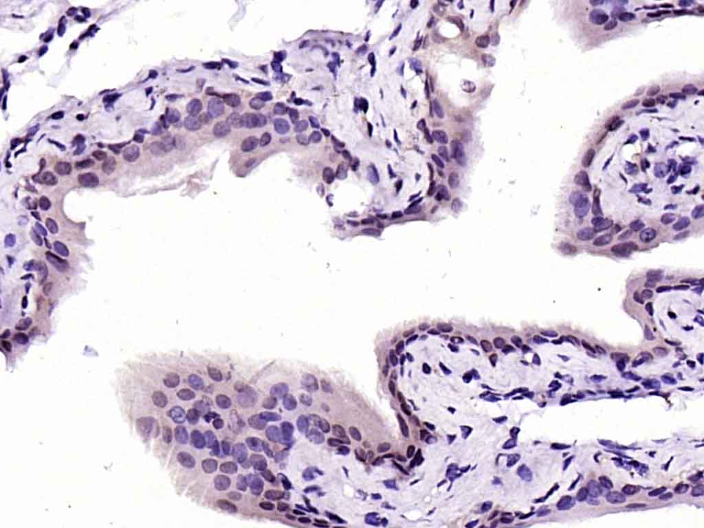 Paraformaldehyde-fixed, paraffin embedded (mouse bladder); Antigen retrieval by boiling in sodium citrate buffer (pH6.0) for 15min; Block endogenous peroxidase by 3% hydrogen peroxide for 20 minutes; Blocking buffer (normal goat serum) at 37°C for 30min; Antibody incubation with (CNOT2) Polyclonal Antibody, Unconjugated (bs-9383R) at 1:200 overnight at 4°C, followed by operating according to SP Kit(Rabbit) (sp-0023) instructionsand DAB staining.