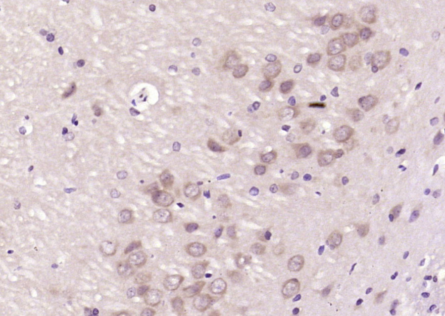 Paraformaldehyde-fixed, paraffin embedded (rat brain); Antigen retrieval by boiling in sodium citrate buffer (pH6.0) for 15min; Block endogenous peroxidase by 3% hydrogen peroxide for 20 minutes; Blocking buffer (normal goat serum) at 37°C for 30min; Antibody incubation with (CAF1p55/VPRBP) Polyclonal Antibody, Unconjugated (bs-9393R) at 1:200 overnight at 4°C, followed by operating according to SP Kit(Rabbit) (sp-0023) instructionsand DAB staining.