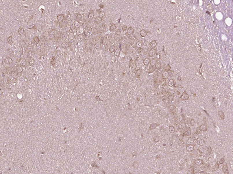 Paraformaldehyde-fixed, paraffin embedded (Rat brain); Antigen retrieval by boiling in sodium citrate buffer (pH6.0) for 15min; Block endogenous peroxidase by 3% hydrogen peroxide for 20 minutes; Blocking buffer (normal goat serum) at 37°C for 30min; Antibody incubation with (TSPAN5) Polyclonal Antibody, Unconjugated (bs-9414R) at 1:400 overnight at 4°C, followed by operating according to SP Kit(Rabbit) (sp-0023) instructionsand DAB staining.
