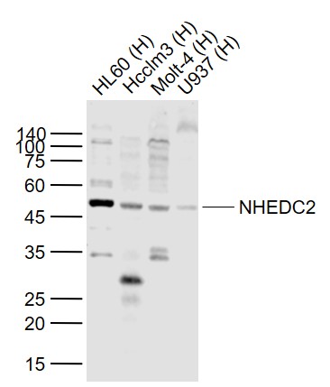 Primary: Anti-NHEDC2 (bs-9712R) at 1/1000 dilution