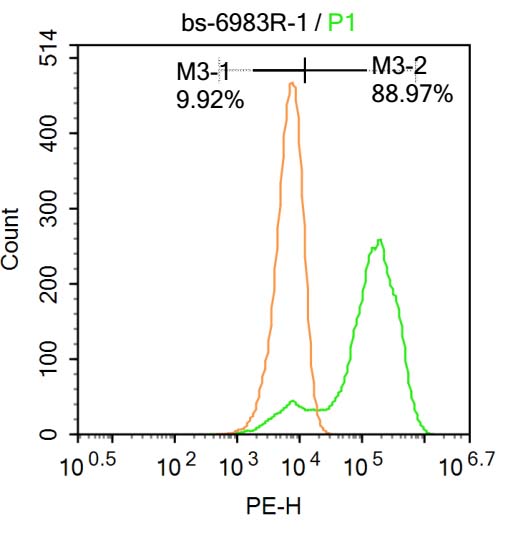 Primary Antibody (green line): Rabbit Anti-Wilms Tumor Protein antibody (bs-6983R)