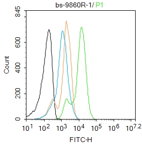 Primary Antibody (green line): Rabbit Anti-phospho-cardiac Troponin I (Thr143) antibody (bs-9860R)