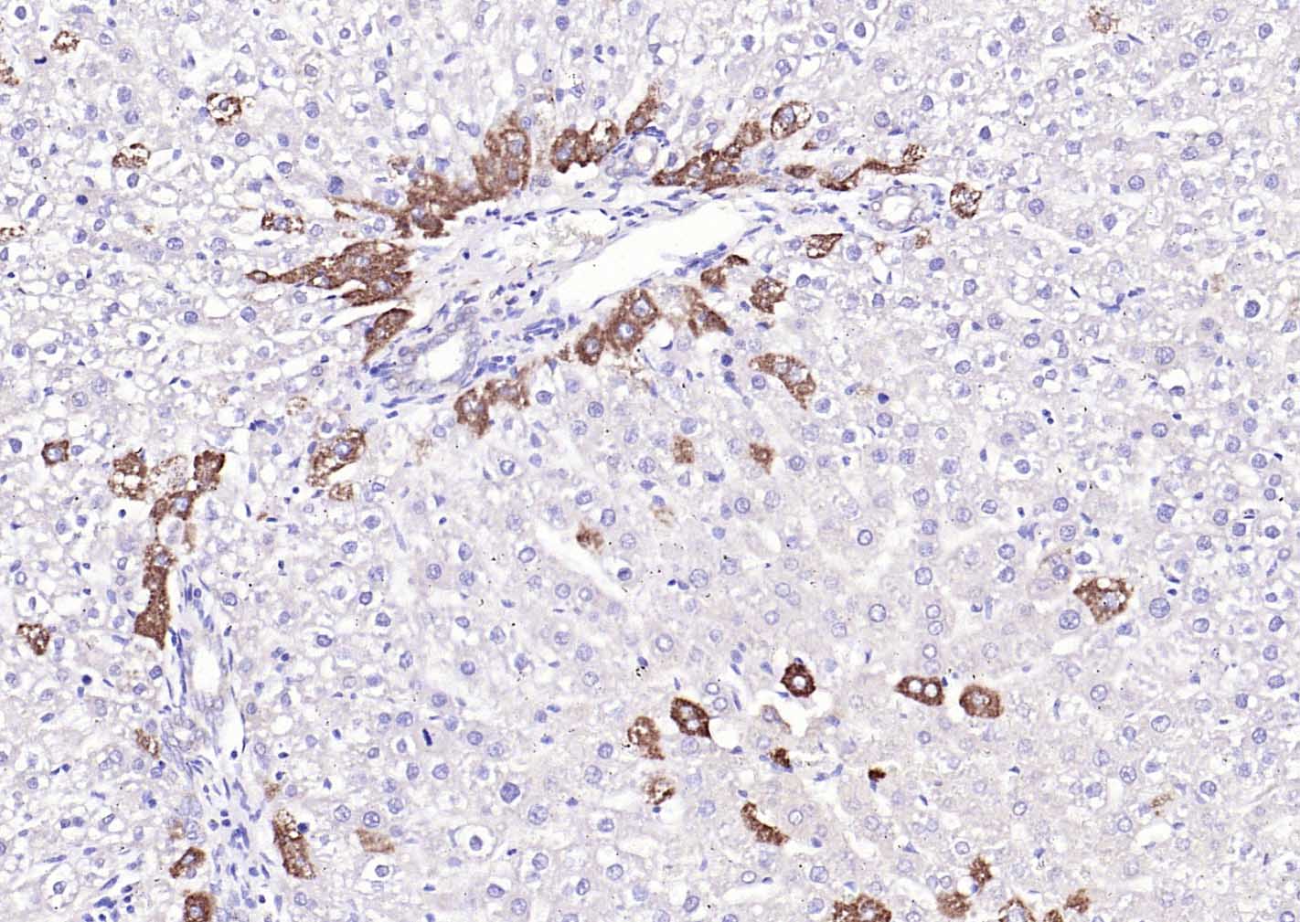 Paraformaldehyde-fixed, paraffin embedded (rat liver); Antigen retrieval by boiling in sodium citrate buffer (pH6.0) for 15min; Block endogenous peroxidase by 3% hydrogen peroxide for 20 minutes; Blocking buffer (normal goat serum) at 37°C for 30min; Incubation with (GPLD1) Polyclonal Antibody, Unconjugated (bs-9910R) at 1:200 overnight at 4°C, followed by operating according to SP Kit(Rabbit) (sp-0023) instructionsand DAB staining.
