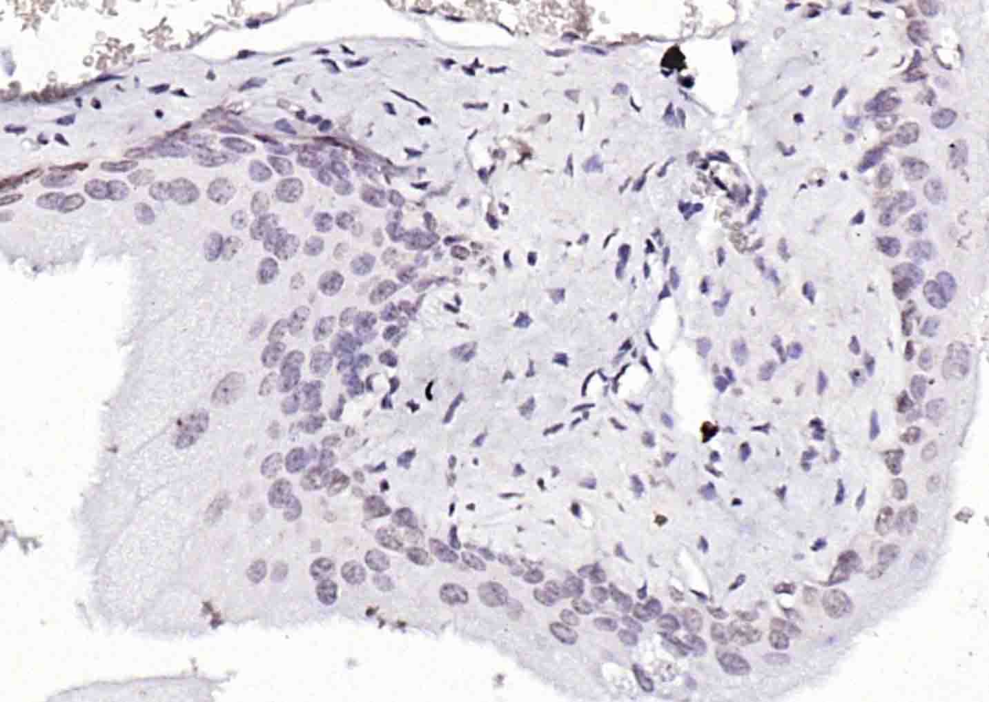 Paraformaldehyde-fixed, paraffin embedded (mouse bladder); Antigen retrieval by boiling in sodium citrate buffer (pH6.0) for 15min; Block endogenous peroxidase by 3% hydrogen peroxide for 20 minutes; Blocking buffer (normal goat serum) at 37°C for 30min; Incubation with (Phospho-SRF (Ser77)) Polyclonal Antibody, Unconjugated (bs-9602R) at 1:200 overnight at 4°C, followed by operating according to SP Kit(Rabbit) (sp-0023) instructionsand DAB staining.