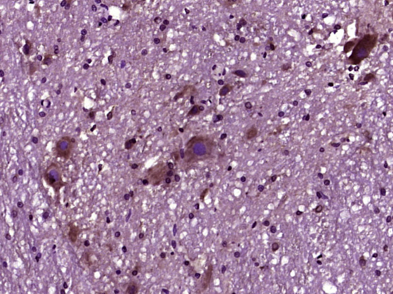 Paraformaldehyde-fixed, paraffin embedded (rat spinal tissue); Antigen retrieval by boiling in sodium citrate buffer (pH6.0) for 15min; Block endogenous peroxidase by 3% hydrogen peroxide for 20 minutes; Blocking buffer (normal goat serum) at 37°C for 30min; Antibody incubation with (Laminin 2 alpha) Polyclonal Antibody, Unconjugated (bs-8561R) at 1:400 overnight at 4°C, followed by operating according to SP Kit(Rabbit) (sp-0023) instructionsand DAB staining.