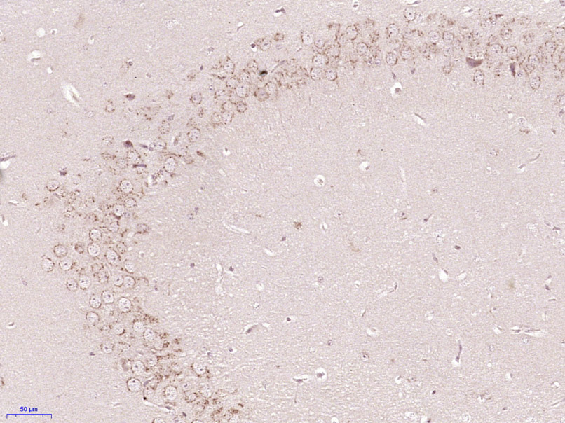 Paraformaldehyde-fixed, paraffin embedded (Rat brain); Antigen retrieval by boiling in sodium citrate buffer (pH6.0) for 15min; Block endogenous peroxidase by 3% hydrogen peroxide for 20 minutes; Blocking buffer (normal goat serum) at 37°C for 30min; Antibody incubation with (Gliomedin) Polyclonal Antibody, Unconjugated (bs-11032R) at 1:400 overnight at 4°C, followed by operating according to SP Kit(Rabbit) (sp-0023) instructionsand DAB staining.