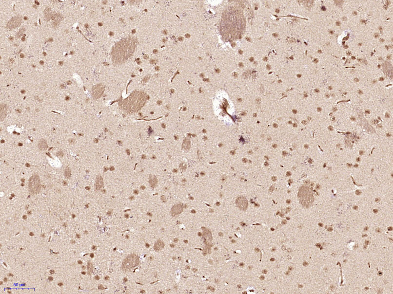 Paraformaldehyde-fixed, paraffin embedded (Mouse brain); Antigen retrieval by boiling in sodium citrate buffer (pH6.0) for 15min; Block endogenous peroxidase by 3% hydrogen peroxide for 20 minutes; Blocking buffer (normal goat serum) at 37°C for 30min; Antibody incubation with (SOX4) Polyclonal Antibody, Unconjugated (bs-11208R) at 1:400 overnight at 4°C, followed by operating according to SP Kit(Rabbit) (sp-0023) instructionsand DAB staining.