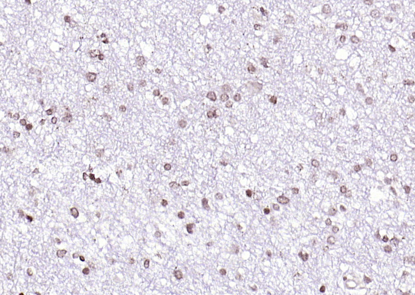 Paraformaldehyde-fixed, paraffin embedded (human brain glioma); Antigen retrieval by boiling in sodium citrate buffer (pH6.0) for 15min; Block endogenous peroxidase by 3% hydrogen peroxide for 20 minutes; Blocking buffer (normal goat serum) at 37°C for 30min; Antibody incubation with (SOX4) Polyclonal Antibody, Unconjugated (bs-11208R) at 1:200 overnight at 4°C, followed by operating according to SP Kit(Rabbit) (sp-0023) instructionsand DAB staining.