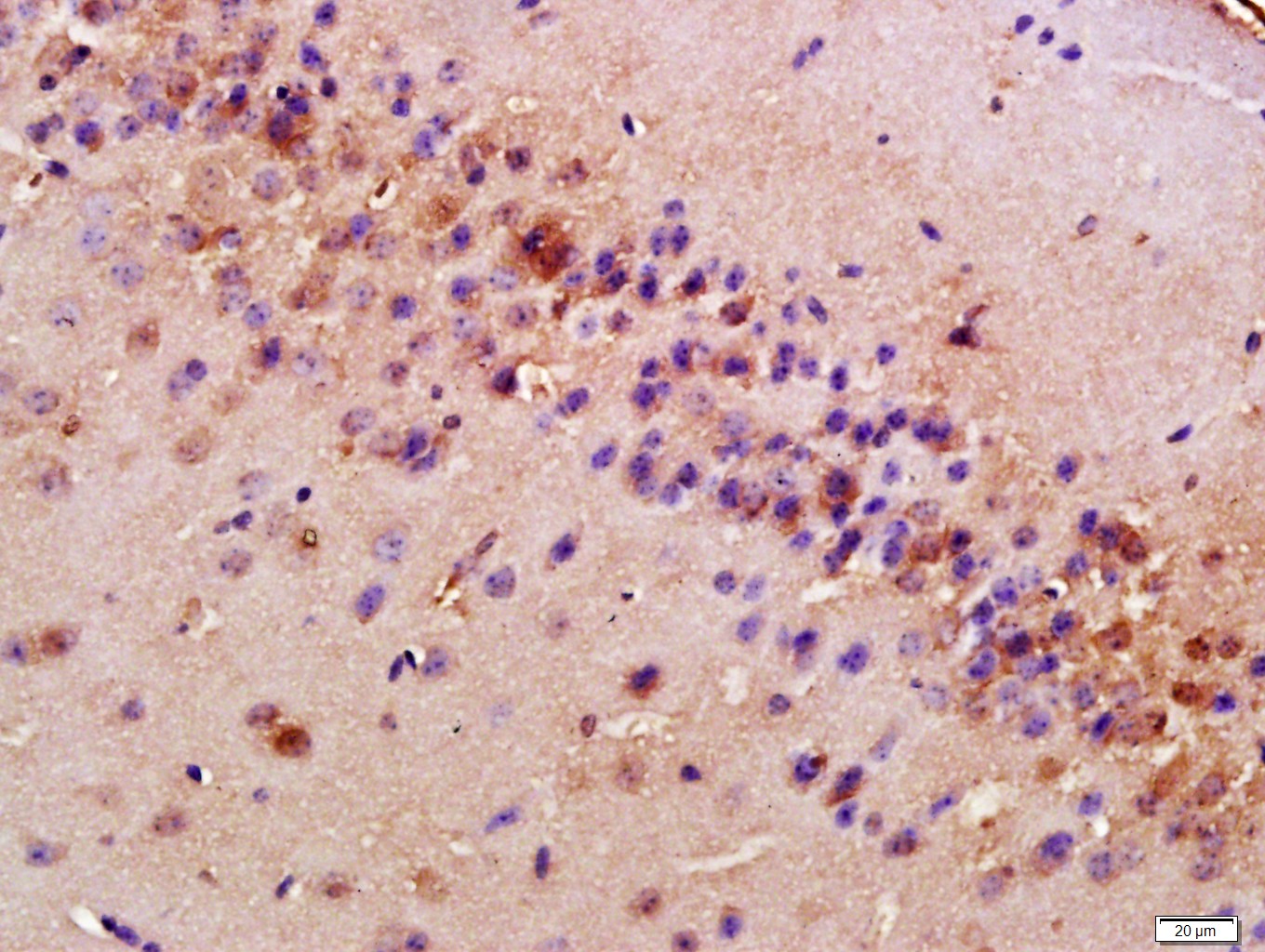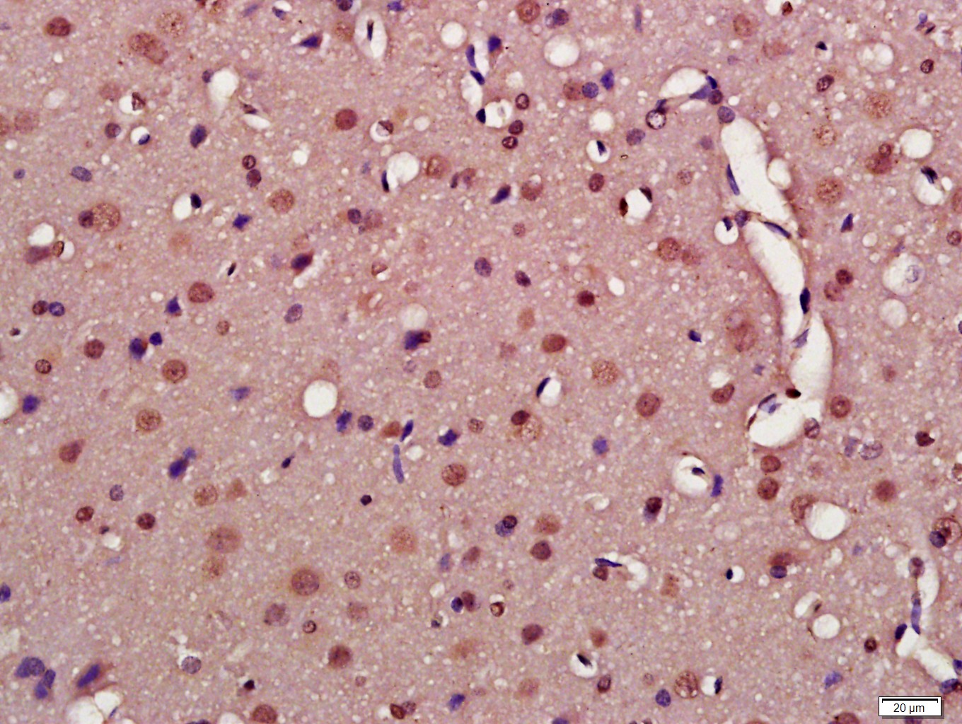 Paraformaldehyde-fixed, paraffin embedded (Mouse brain); Antigen retrieval by boiling in sodium citrate buffer (pH6.0) for 15min; Block endogenous peroxidase by 3% hydrogen peroxide for 20 minutes; Blocking buffer (normal goat serum) at 37°C for 30min; Antibody incubation with (Alpha-synuclein (nitro-Tyr39)) Polyclonal Antibody, Unconjugated (bs-9587R) at 1:500 overnight at 4°C, followed by a conjugated secondary (sp-0023) for 20 minutes and DAB staining.