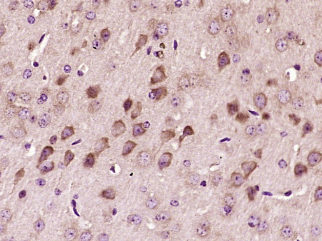 Paraformaldehyde-fixed, paraffin embedded (Rat brain); Antigen retrieval by boiling in sodium citrate buffer (pH6.0) for 15min; Block endogenous peroxidase by 3% hydrogen peroxide for 20 minutes; Blocking buffer (normal goat serum) at 37°C for 30min; Antibody incubation with (von Willebrand antigen 2) Polyclonal Antibody, Unconjugated (bs-4754R) at 1:400 overnight at 4°C, followed by operating according to SP Kit(Rabbit) (sp-0023) instructionsand DAB staining.