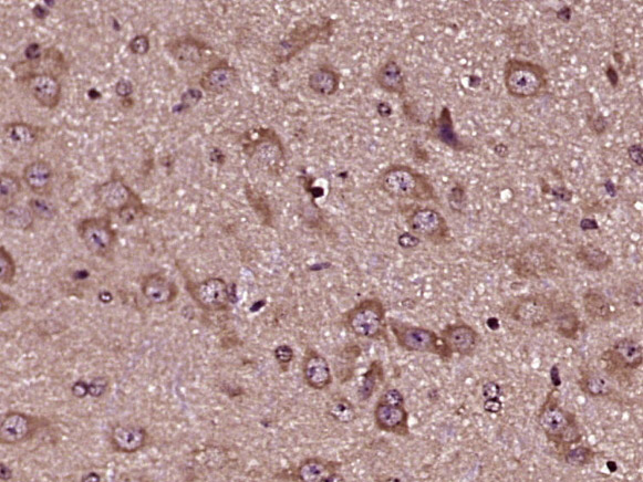 Paraformaldehyde-fixed, paraffin embedded (mouse brain tissue); Antigen retrieval by boiling in sodium citrate buffer (pH6.0) for 15min; Block endogenous peroxidase by 3% hydrogen peroxide for 20 minutes; Blocking buffer (normal goat serum) at 37°C for 30min; Antibody incubation with (TLR8) Polyclonal Antibody, Unconjugated (bs-8684R) at 1:400 overnight at 4°C, followed by operating according to SP Kit(Rabbit) (sp-0023) instructionsand DAB staining.