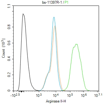 Primary Antibody (green line): Rabbit Anti-Arginase II antibody (bs-11397R)