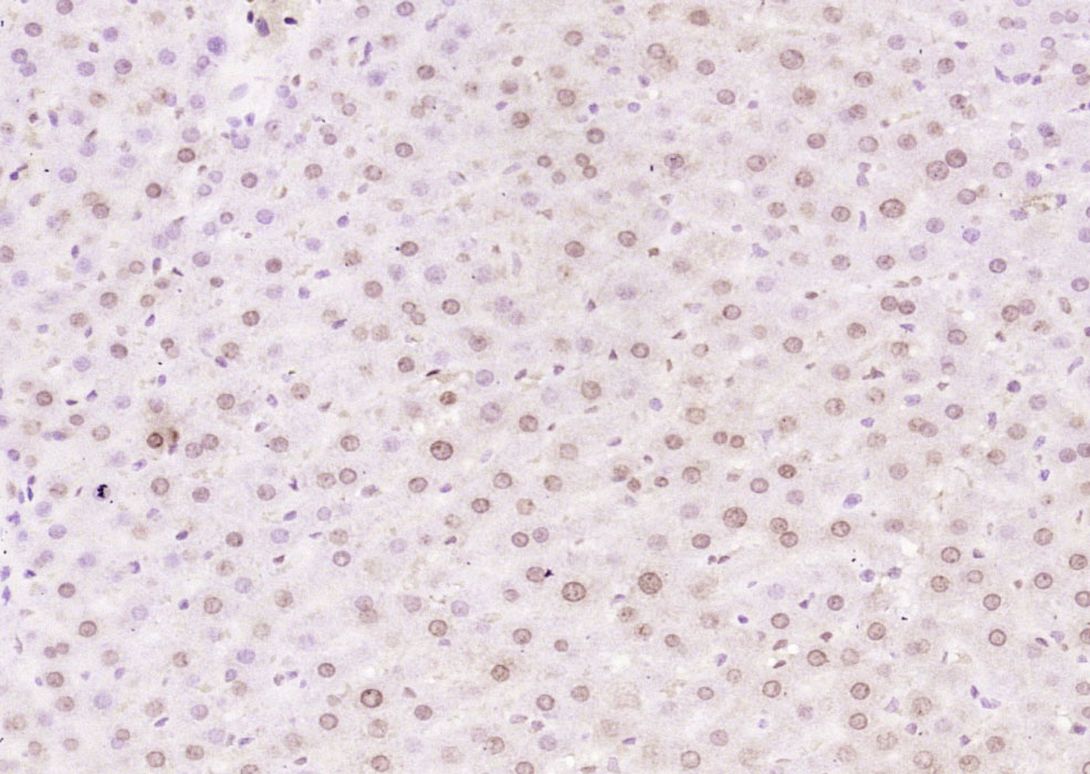 Paraformaldehyde-fixed, paraffin embedded (mouse liver); Antigen retrieval by boiling in sodium citrate buffer (pH6.0) for 15min; Block endogenous peroxidase by 3% hydrogen peroxide for 20 minutes; Blocking buffer (normal goat serum) at 37°C for 30min; Antibody incubation with (THRB1) Polyclonal Antibody, Unconjugated (bs-11440R) at 1:200 overnight at 4°C, followed by operating according to SP Kit(Rabbit) (sp-0023) instructionsand DAB staining.