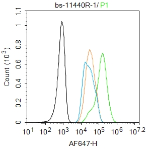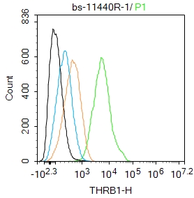 Primary Antibody (green line): Rabbit Anti-THRB1 antibody (bs-11440R)