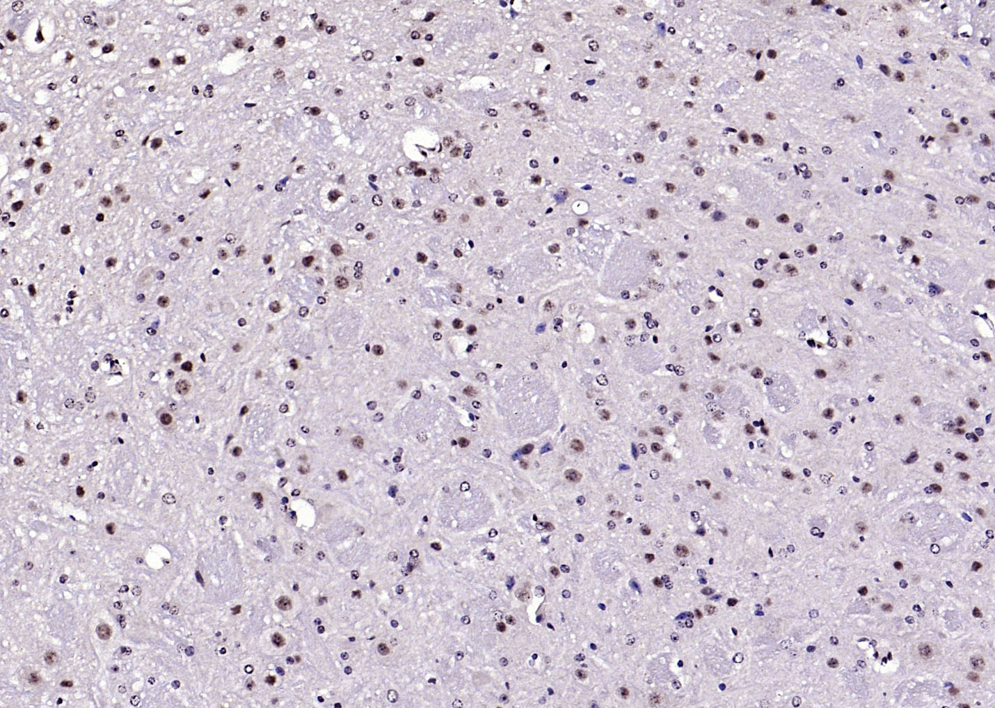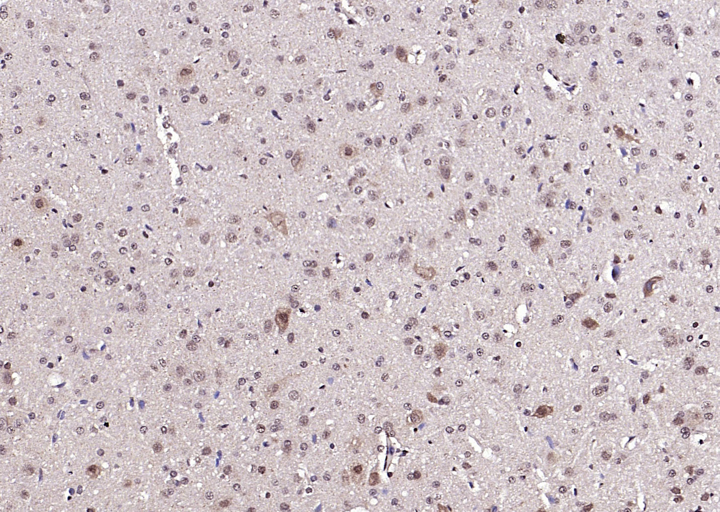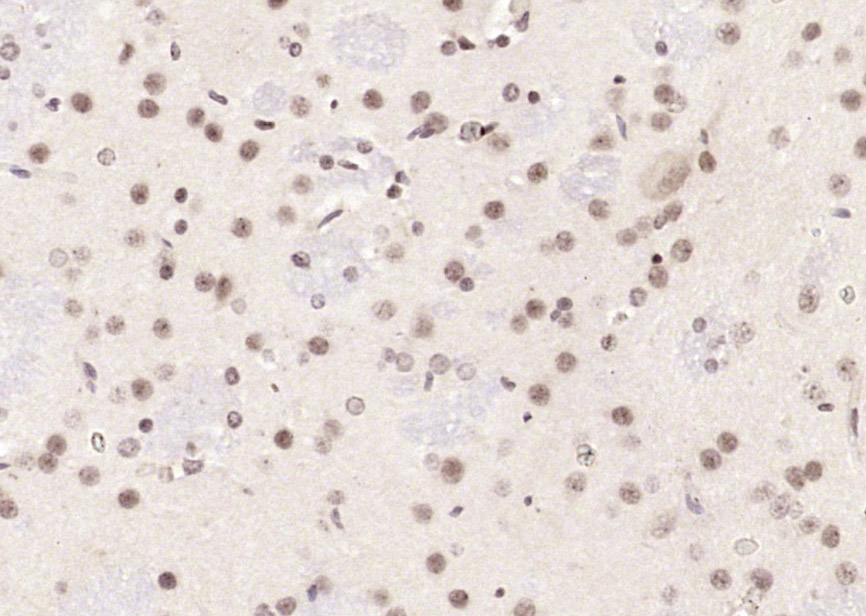 Paraformaldehyde-fixed, paraffin embedded (human brain glioma); Antigen retrieval by boiling in sodium citrate buffer (pH6.0) for 15min; Block endogenous peroxidase by 3% hydrogen peroxide for 20 minutes; Blocking buffer (normal goat serum) at 37°C for 30min; Antibody incubation with (Neuro D) Polyclonal Antibody, Unconjugated (bs-11573R) at 1:200 overnight at 4°C, followed by operating according to SP Kit(Rabbit) (sp-0023) instructionsand DAB staining.