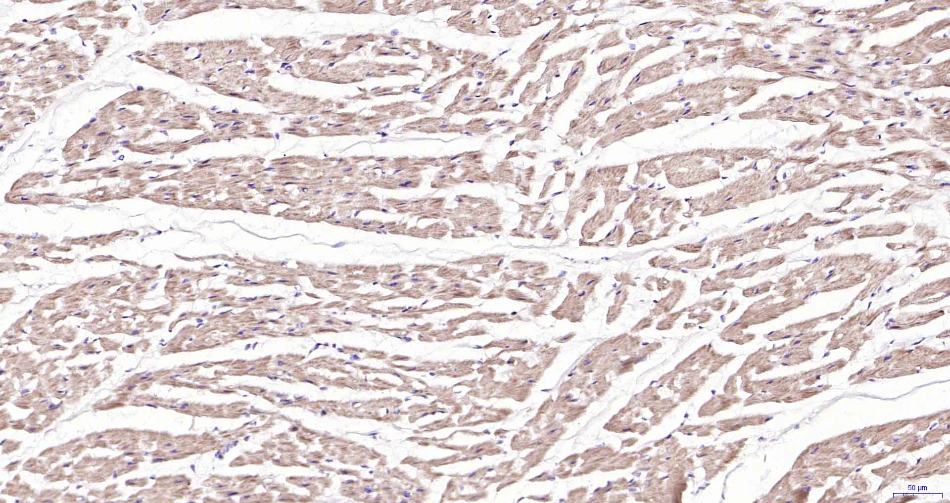 Paraformaldehyde-fixed, paraffin embedded (rat heart); Antigen retrieval by boiling in sodium citrate buffer (pH6.0) for 15min; Block endogenous peroxidase by 3% hydrogen peroxide for 20 minutes; Blocking buffer (normal goat serum) at 37°C for 30min; Antibody incubation with (PDE7A) Polyclonal Antibody, Unconjugated (bs-11575R) at 1:500 overnight at 4°C, followed by a conjugated secondary (sp-0023) for 20 minutes and DAB staining.