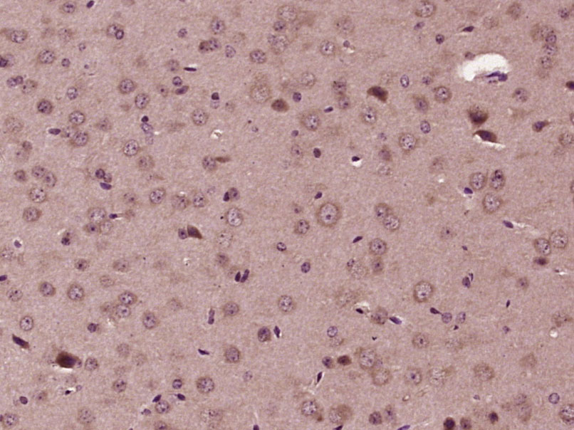 Paraformaldehyde-fixed, paraffin embedded (Mouse brain); Antigen retrieval by boiling in sodium citrate buffer (pH6.0) for 15min; Block endogenous peroxidase by 3% hydrogen peroxide for 20 minutes; Blocking buffer (normal goat serum) at 37°C for 30min; Antibody incubation with (Diazepam Binding Inhibitor) Polyclonal Antibody, Unconjugated (bs-11658R) at 1:400 overnight at 4°C, followed by operating according to SP Kit(Rabbit) (sp-0023) instructionsand DAB staining.