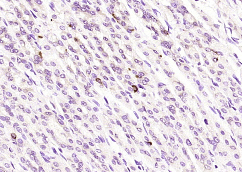 Paraformaldehyde-fixed, paraffin embedded (rat stomach); Antigen retrieval by boiling in sodium citrate buffer (pH6.0) for 15min; Block endogenous peroxidase by 3% hydrogen peroxide for 20 minutes; Blocking buffer (normal goat serum) at 37°C for 30min; Antibody incubation with (Somatostatin 14) Polyclonal Antibody, Unconjugated (bs-11796R) at 1:200 overnight at 4°C, followed by operating according to SP Kit(Rabbit) (sp-0023) instructionsand DAB staining.
