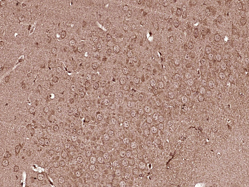 Paraformaldehyde-fixed, paraffin embedded (Mouse brain); Antigen retrieval by boiling in sodium citrate buffer (pH6.0) for 15min; Block endogenous peroxidase by 3% hydrogen peroxide for 20 minutes; Blocking buffer (normal goat serum) at 37°C for 30min; Antibody incubation with (LIM kinase 1 + 2) Polyclonal Antibody, Unconjugated (bs-11871R) at 1:400 overnight at 4°C, followed by operating according to SP Kit(Rabbit) (sp-0023) instructionsand DAB staining.