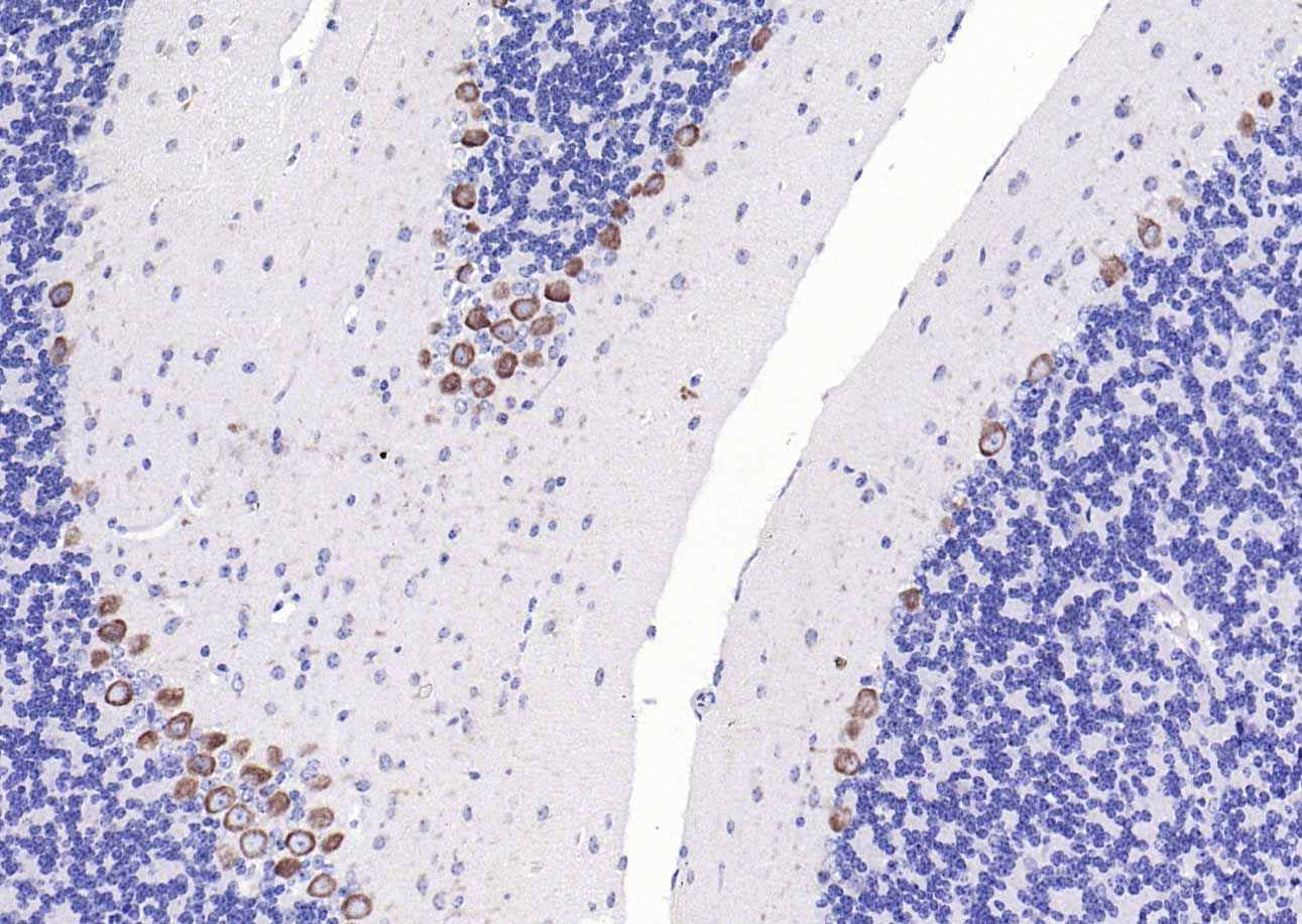 Paraformaldehyde-fixed, paraffin embedded (mouse cerebellum); Antigen retrieval by boiling in sodium citrate buffer (pH6.0) for 15min; Block endogenous peroxidase by 3% hydrogen peroxide for 20 minutes; Blocking buffer (normal goat serum) at 37°C for 30min; Antibody incubation with (CACNA1G + CACNA1H) Polyclonal Antibody, Unconjugated (bs-11984R) at 1:200 overnight at 4°C, followed by operating according to SP Kit(Rabbit) (sp-0023) instructionsand DAB staining.