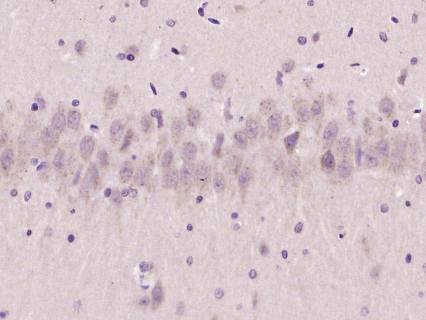 Paraformaldehyde-fixed, paraffin embedded (rat brain); Antigen retrieval by boiling in sodium citrate buffer (pH6.0) for 15min; Block endogenous peroxidase by 3% hydrogen peroxide for 20 minutes; Blocking buffer (normal goat serum) at 37°C for 30min; Antibody incubation with (PMCA3) Polyclonal Antibody, Unconjugated (bs-11985R) at 1:200 overnight at 4°C, followed by operating according to SP Kit(Rabbit) (sp-0023) instructionsand DAB staining.