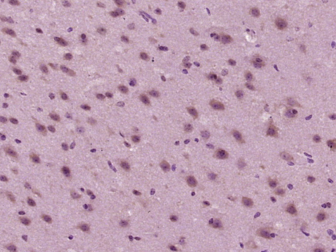 Paraformaldehyde-fixed, paraffin embedded (mouse brain tissue); Antigen retrieval by boiling in sodium citrate buffer (pH6.0) for 15min; Block endogenous peroxidase by 3% hydrogen peroxide for 20 minutes; Blocking buffer (normal goat serum) at 37°C for 30min; Antibody incubation with (GPR125) Polyclonal Antibody, Unconjugated (bs-12021R) at 1:400 overnight at 4°C, followed by operating according to SP Kit(Rabbit) (sp-0023) instructionsand DAB staining.