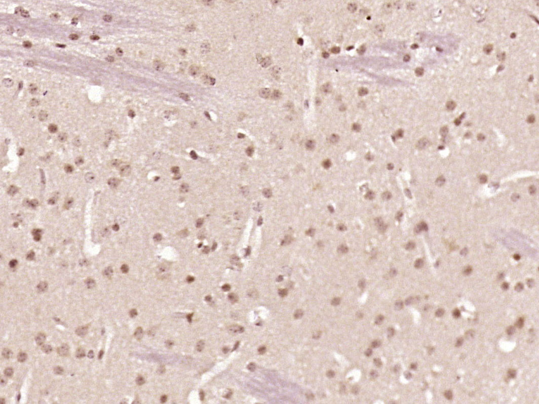 Paraformaldehyde-fixed, paraffin embedded (Mouse brain); Antigen retrieval by boiling in sodium citrate buffer (pH6.0) for 15min; Block endogenous peroxidase by 3% hydrogen peroxide for 20 minutes; Blocking buffer (normal goat serum) at 37°C for 30min; Antibody incubation with (ZNF312) Polyclonal Antibody, Unconjugated (bs-12148R) at 1:500 overnight at 4°C, followed by a conjugated secondary (sp-0023) for 20 minutes and DAB staining.