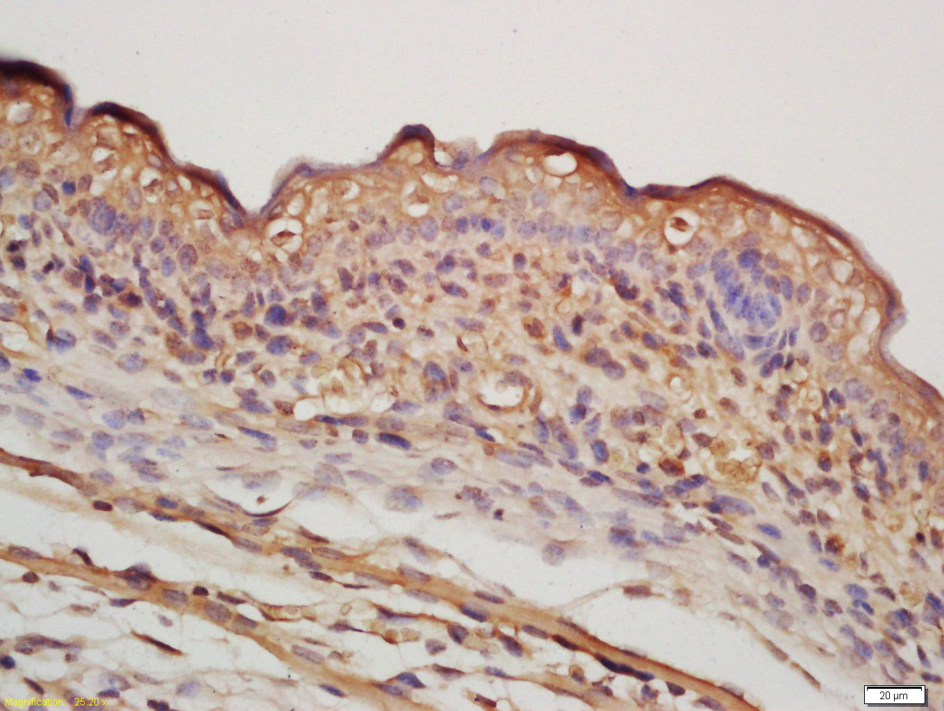 Antigen retrieval: citrate buffer ( 0.01M, pH 6.0 ), Boiling bathing for 15min; Block endogenous peroxidase by 3% Hydrogen peroxide for 30min; Blocking buffer (normal goat serum,C-0005) at 37℃ for 20 min;