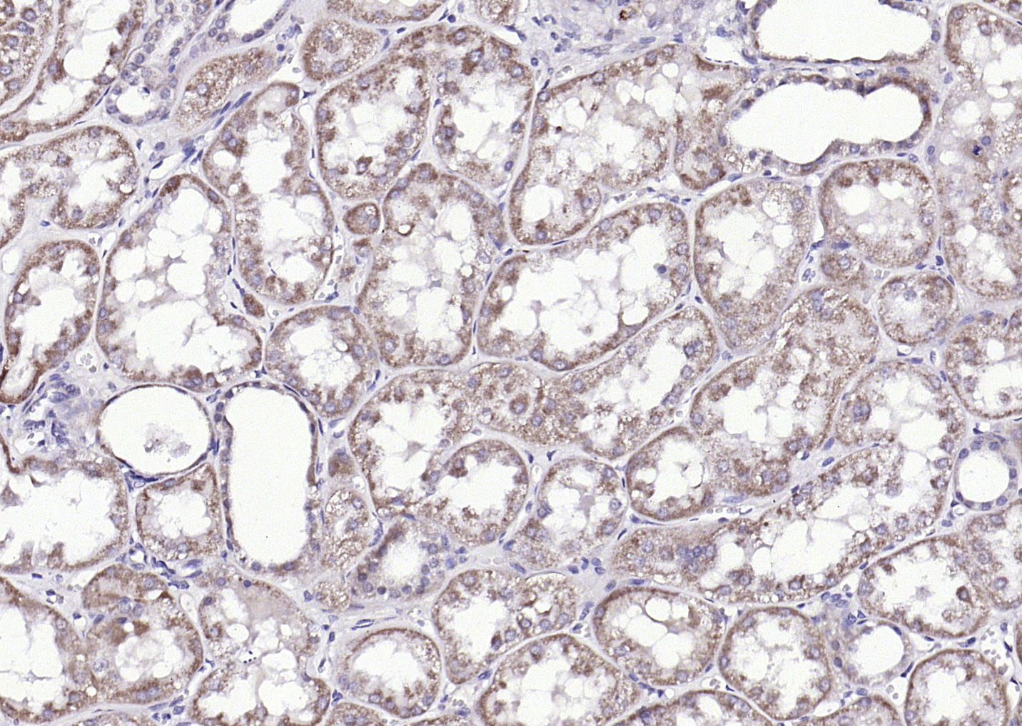 Lane 2: Kidney (Rat) Lysate at 40 ug