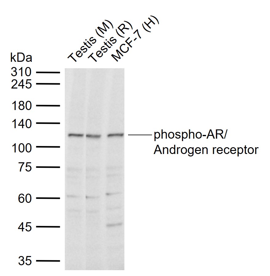 Primary: Anti-phospho-AR/Androgen receptor (Ser791) (bs-12472R) at 1/1000 dilution
