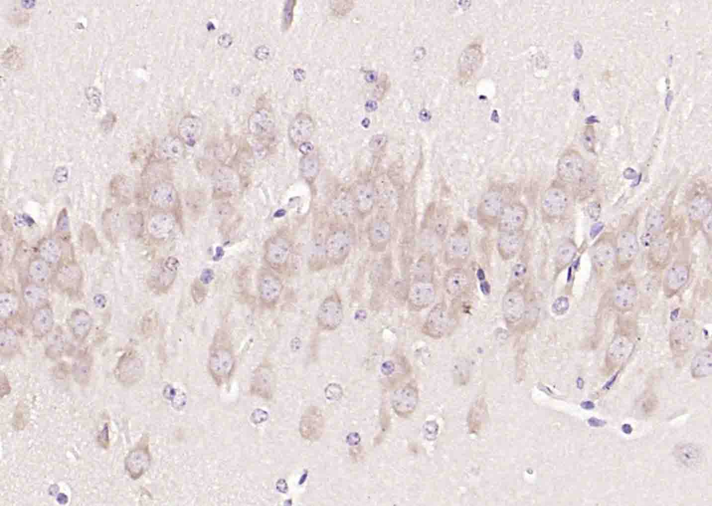 Paraformaldehyde-fixed, paraffin embedded (rat cerebellum); Antigen retrieval by boiling in sodium citrate buffer (pH6.0) for 15min; Block endogenous peroxidase by 3% hydrogen peroxide for 20 minutes; Blocking buffer (normal goat serum) at 37°C for 30min; Antibody incubation with (phospho-APC (Ser2054)) Polyclonal Antibody, Unconjugated (bs-12481R) at 1:200 overnight at 4°C, followed by operating according to SP Kit(Rabbit) (sp-0023) instructionsand DAB staining.
