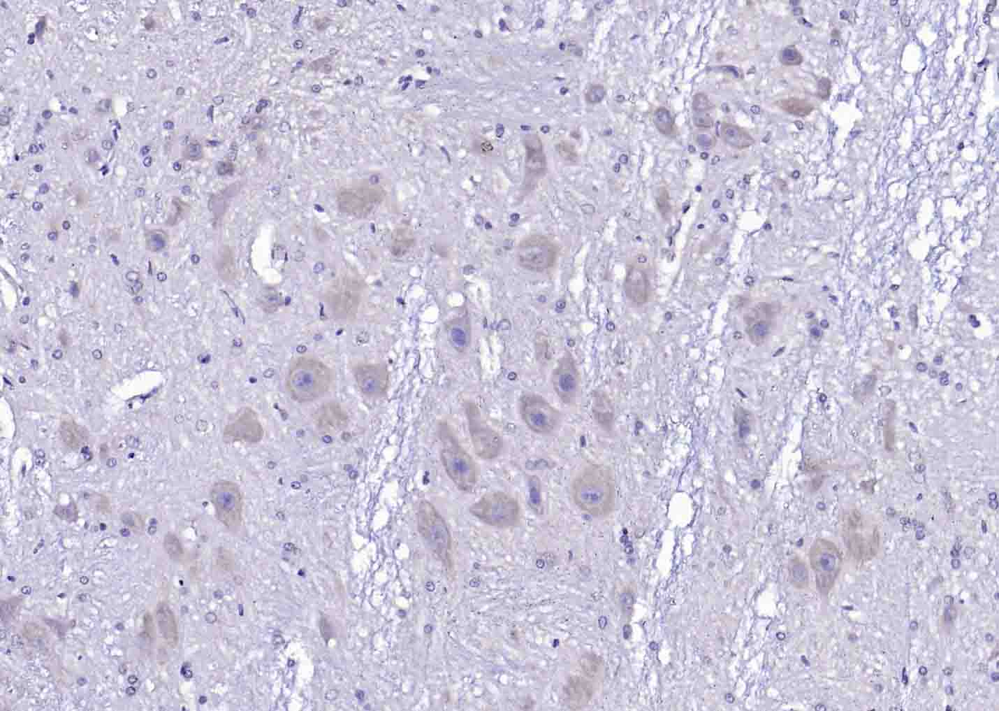 Paraformaldehyde-fixed, paraffin embedded (mouse brain); Antigen retrieval by boiling in sodium citrate buffer (pH6.0) for 15min; Block endogenous peroxidase by 3% hydrogen peroxide for 20 minutes; Blocking buffer (normal goat serum) at 37°C for 30min; Incubation with (phospho-APC (Ser2054)) Polyclonal Antibody, Unconjugated (bs-12481R) at 1:200 overnight at 4°C, followed by operating according to SP Kit(Rabbit) (sp-0023) instructionsand DAB staining.