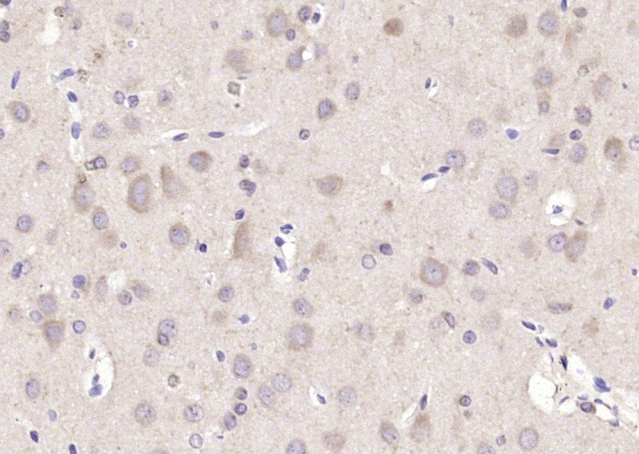 Paraformaldehyde-fixed, paraffin embedded (rat brain); Antigen retrieval by boiling in sodium citrate buffer (pH6.0) for 15min; Block endogenous peroxidase by 3% hydrogen peroxide for 20 minutes; Blocking buffer (normal goat serum) at 37°C for 30min; Antibody incubation with (ARF1) Polyclonal Antibody, Unconjugated (bs-12508R) at 1:200 overnight at 4°C, followed by operating according to SP Kit(Rabbit) (sp-0023) instructionsand DAB staining.
