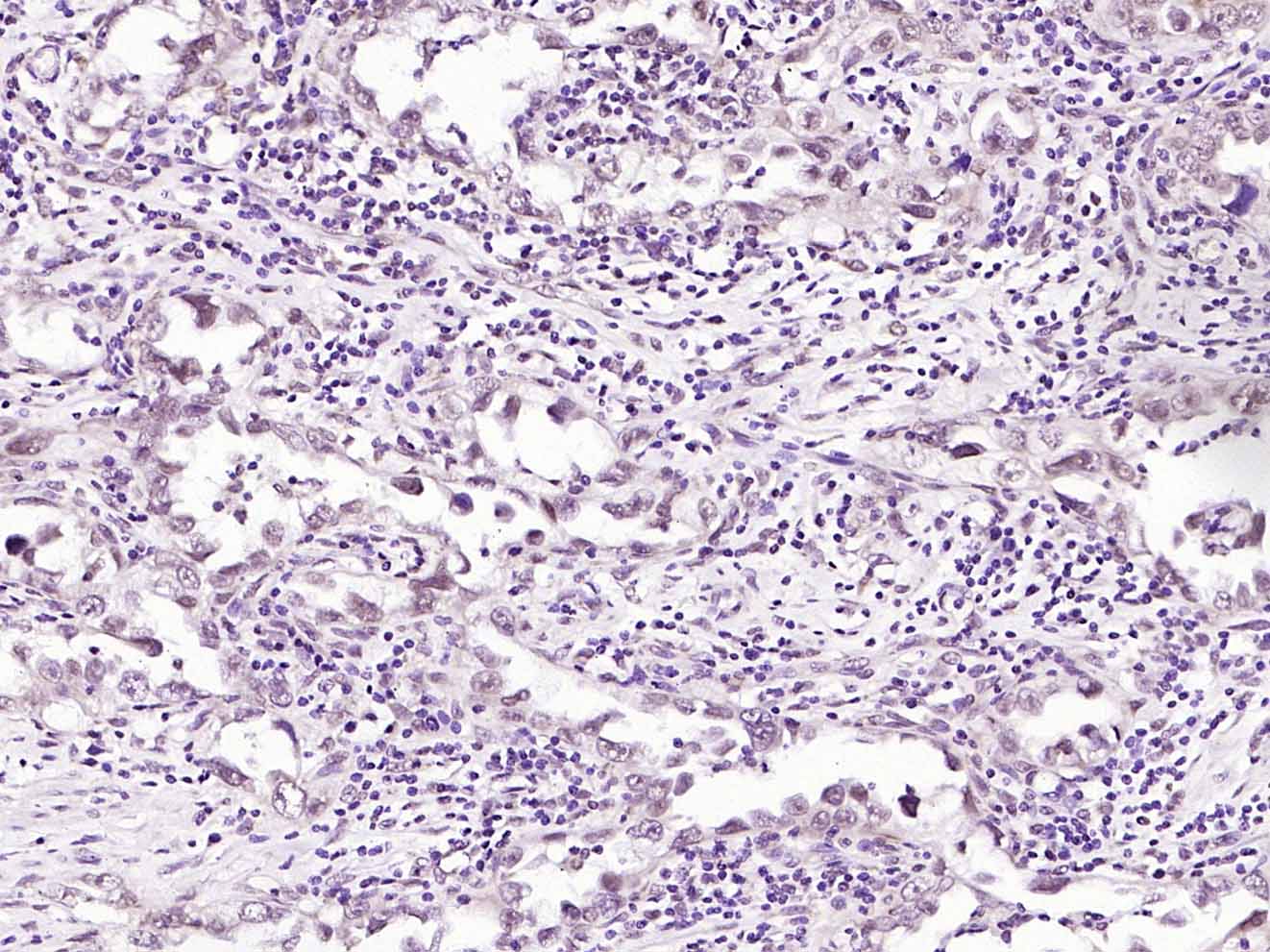 Paraformaldehyde-fixed, paraffin embedded (human breast carcinoma); Antigen retrieval by boiling in sodium citrate buffer (pH6.0) for 15min; Block endogenous peroxidase by 3% hydrogen peroxide for 20 minutes; Blocking buffer (normal goat serum) at 37°C for 30min; Antibody incubation with (phospho-BRAF (Ser729) ) Polyclonal Antibody, Unconjugated (bs-12555R) at 1:200 overnight at 4°C, followed by operating according to SP Kit(Rabbit) (sp-0023) instructionsand DAB staining.