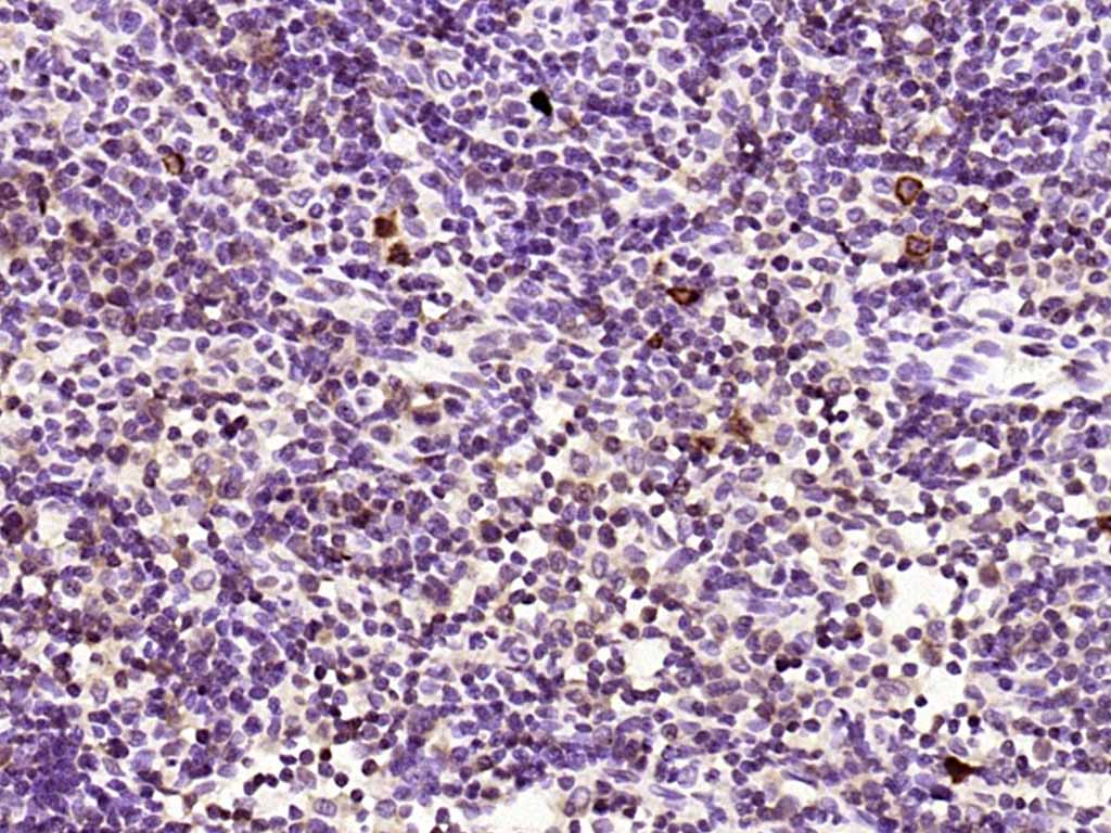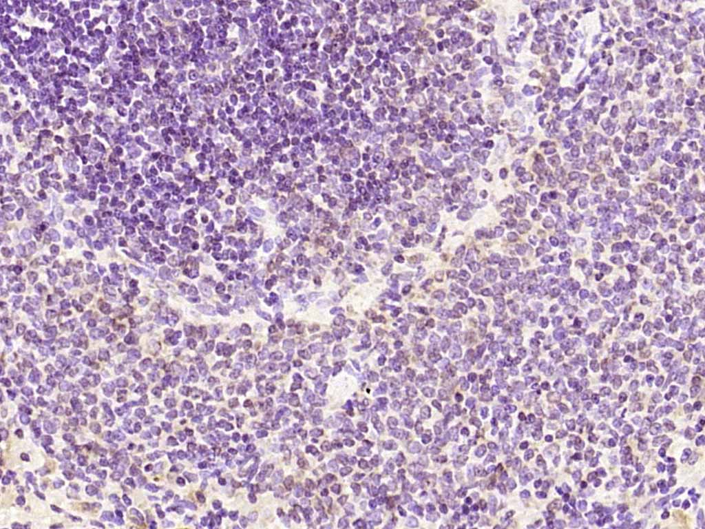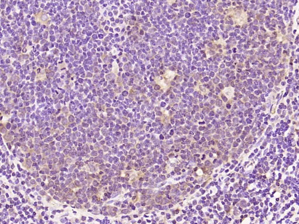 Paraformaldehyde-fixed, paraffin embedded (rat lymphoid); Antigen retrieval by boiling in sodium citrate buffer (pH6.0) for 15min; Block endogenous peroxidase by 3% hydrogen peroxide for 20 minutes; Blocking buffer (normal goat serum) at 37°C for 30min; Antibody incubation with (Phospho-Bcl2 (Ser87)) Polyclonal Antibody, Unconjugated (bs-12577R) at 1:200 overnight at 4°C, followed by operating according to SP Kit(Rabbit) (sp-0023) instructionsand DAB staining.
