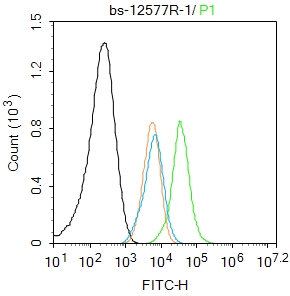 Primary Antibody (green line): Rabbit Anti-Phospho-Bcl2 (Ser87) antibody (bs-12577R)