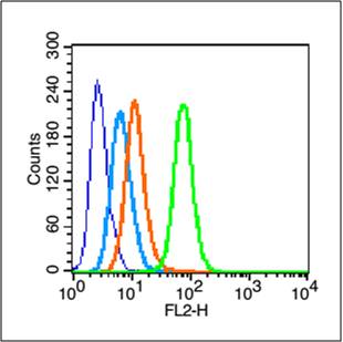 Secondary Antibody (white blue line): Goat anti-rabbit IgG-PE,Dilution: 1μg /test.