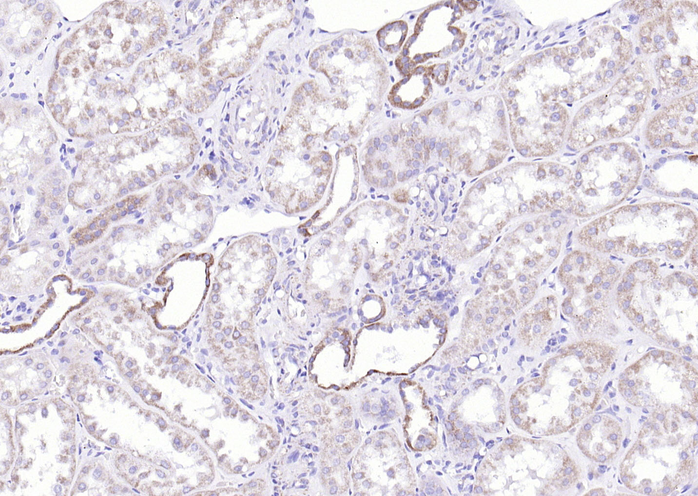 Paraformaldehyde-fixed, paraffin embedded (Human kidney); Antigen retrieval by boiling in sodium citrate buffer (pH6.0) for 15min; Block endogenous peroxidase by 3% hydrogen peroxide for 20 minutes; Blocking buffer (normal goat serum) at 37°C for 30min; Antibody incubation with (COX6c) Polyclonal Antibody, Unconjugated (bs-12925R) at 1:200 overnight at 4°C, followed by operating according to SP Kit(Rabbit) (sp-0023) instructionsand DAB staining.