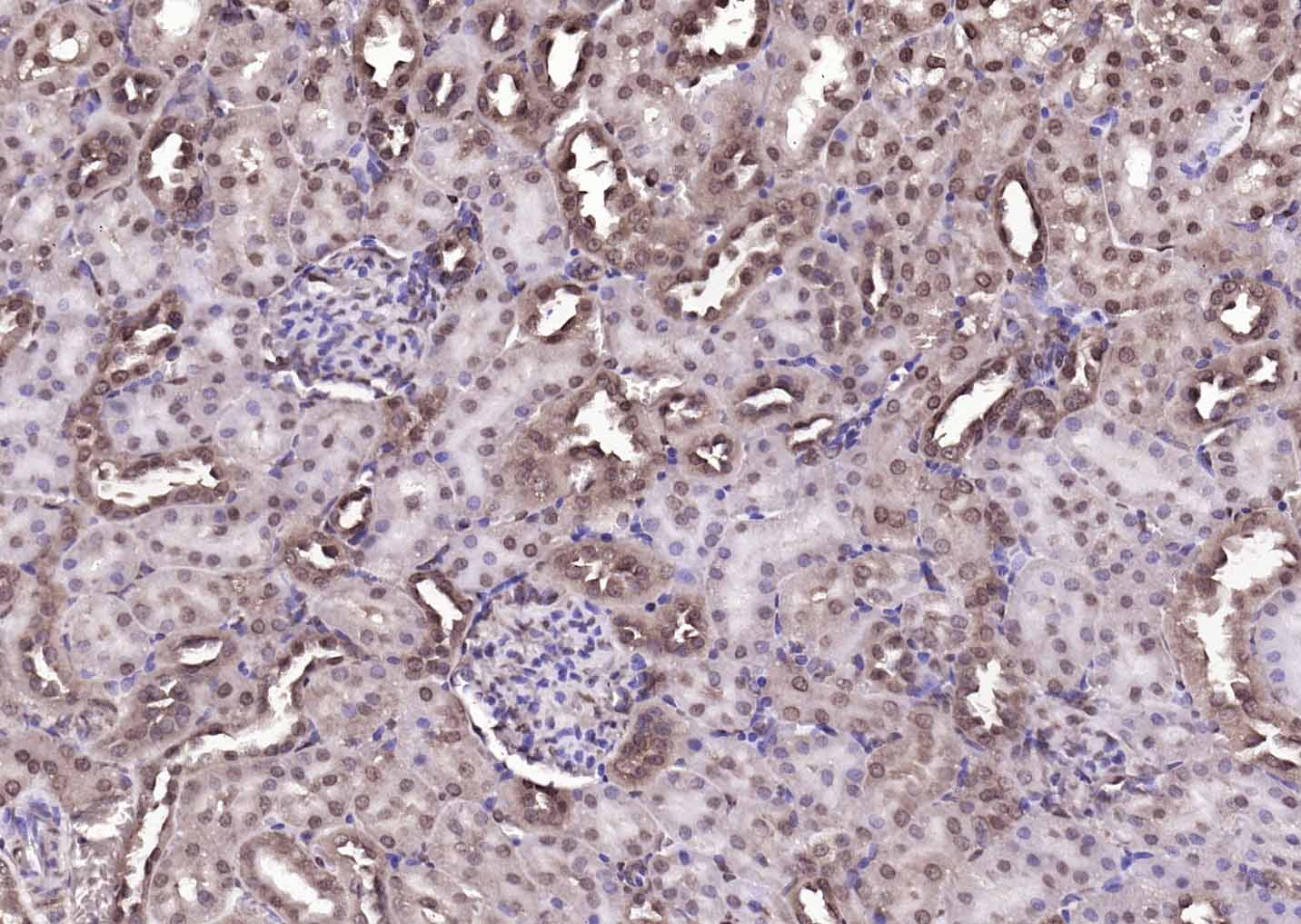Paraformaldehyde-fixed, paraffin embedded (human kidney); Antigen retrieval by boiling in sodium citrate buffer (pH6.0) for 15min; Block endogenous peroxidase by 3% hydrogen peroxide for 20 minutes; Blocking buffer (normal goat serum) at 37°C for 30min; Antibody incubation with (DBPA) Polyclonal Antibody, Unconjugated (bs-12985R) at 1:200 overnight at 4°C, followed by operating according to SP Kit(Rabbit) (sp-0023) instructionsand DAB staining.